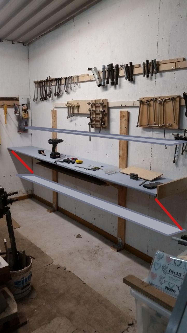 Foto del toot precedente con l'aggiunta (via Inkscape) di due scaffali e due saette.