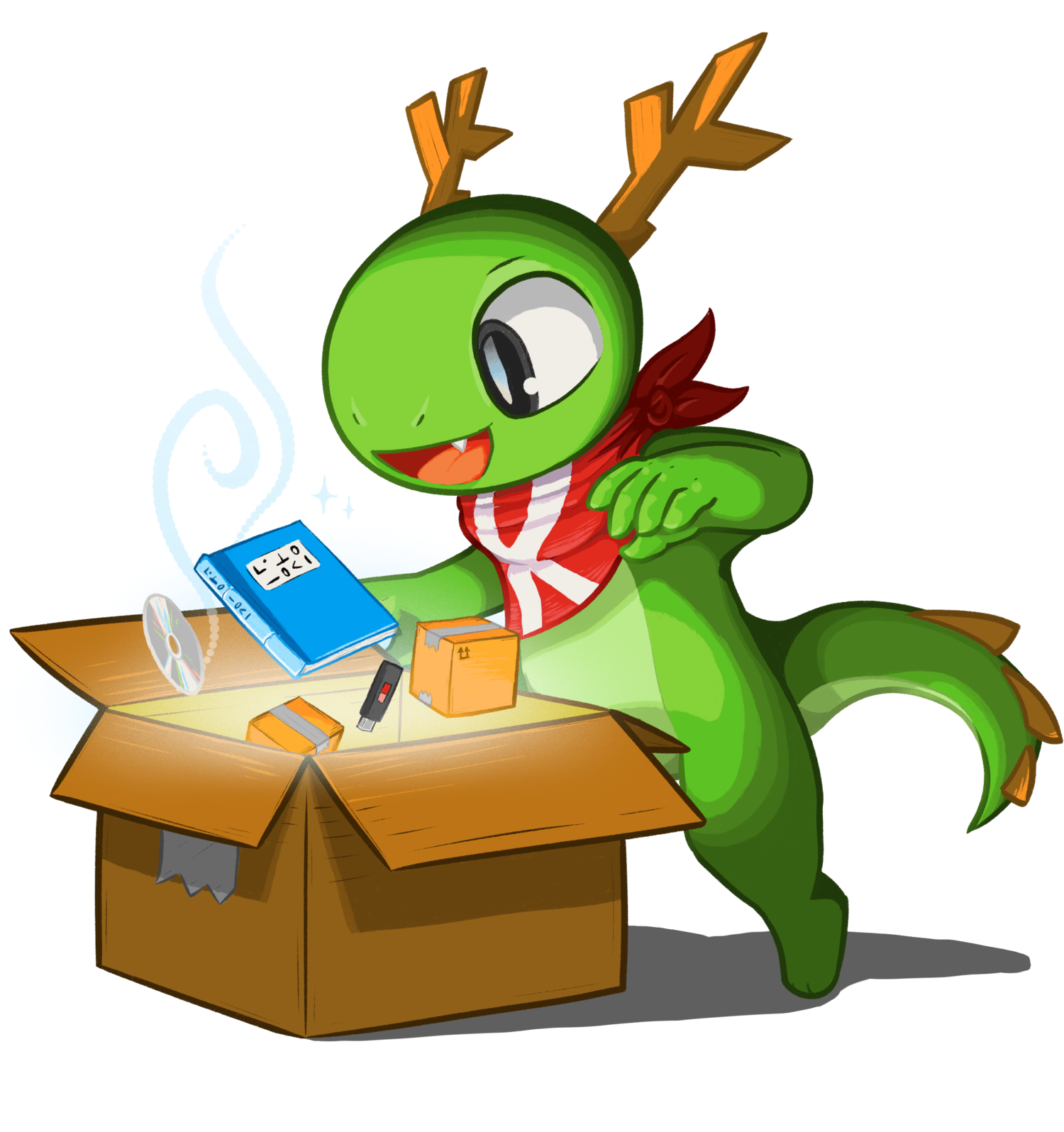 Konqi opens a magic box of wonderful KDE things on his birthday. Image by Arctaxia.