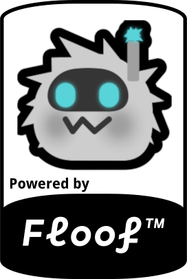 A sticker, that says "Powered by Floofโข", with a neobot_floof emoji on the top of it.