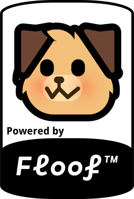 A sticker, that says "Powered by Floofโข", with a neodog_floof emoji on the top of it.