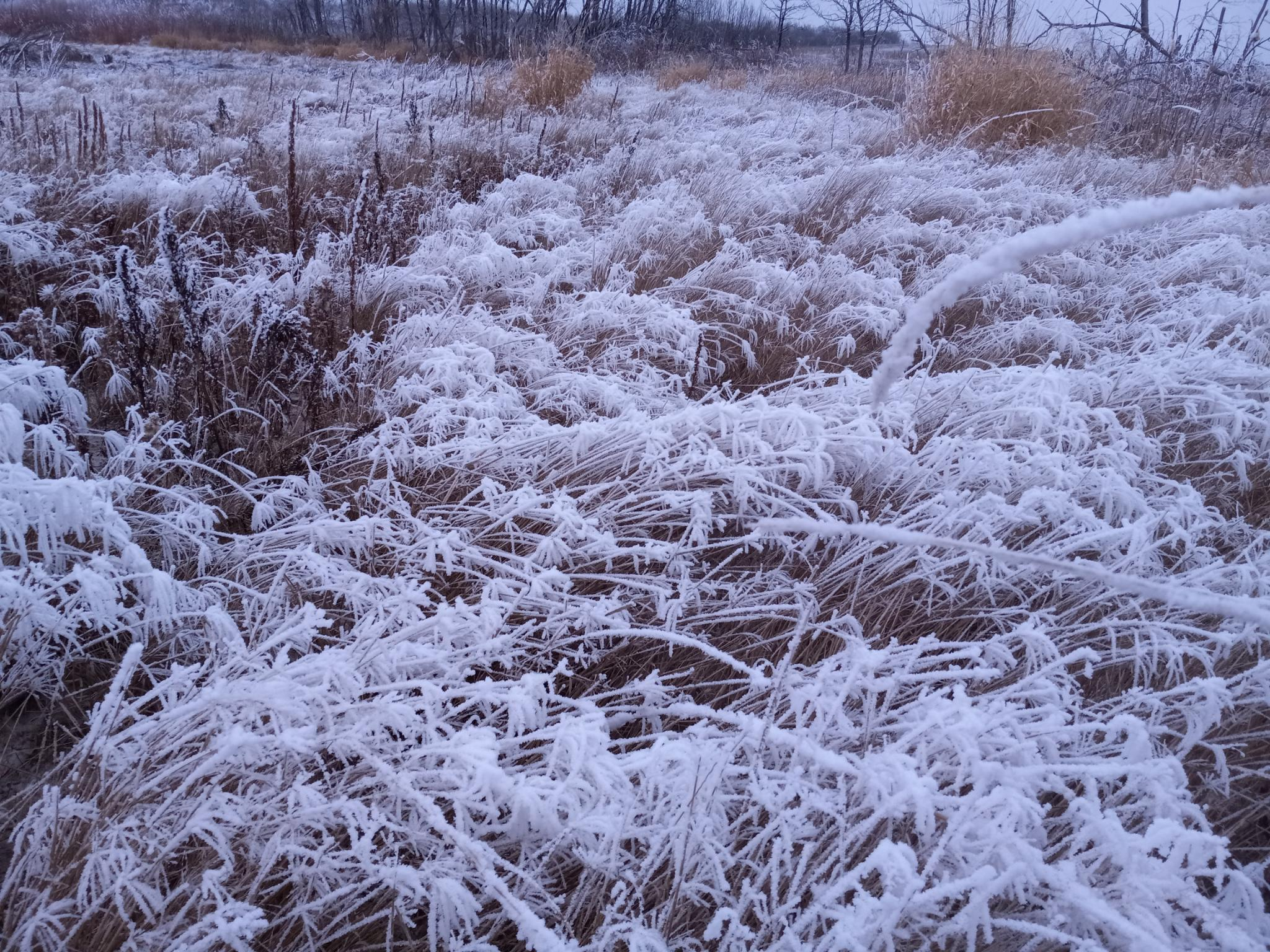 Grasses that are completely covered with frost, on every single twig and blade. It's beautiful.
