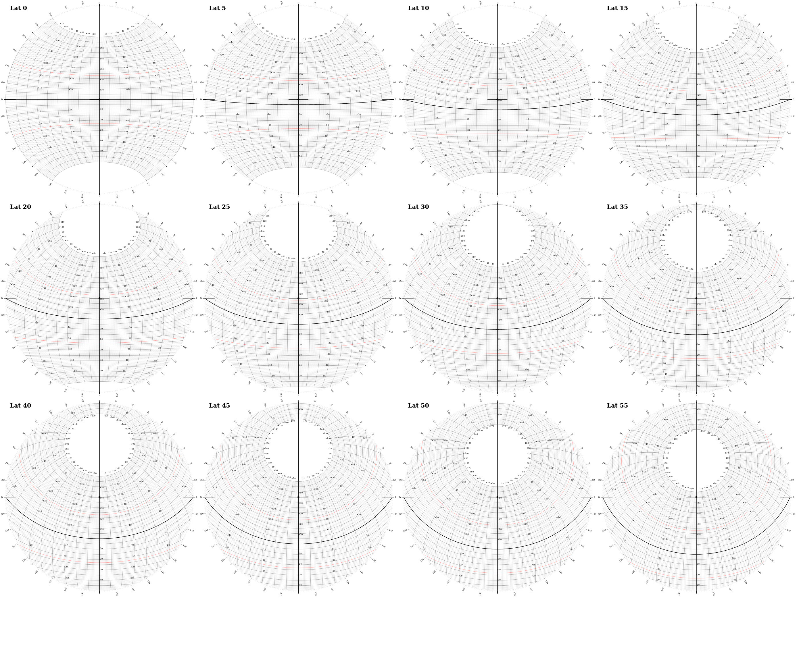 twelve circular plots that are beginning to approximate spheres with lines of latitude and meridians of longitude
