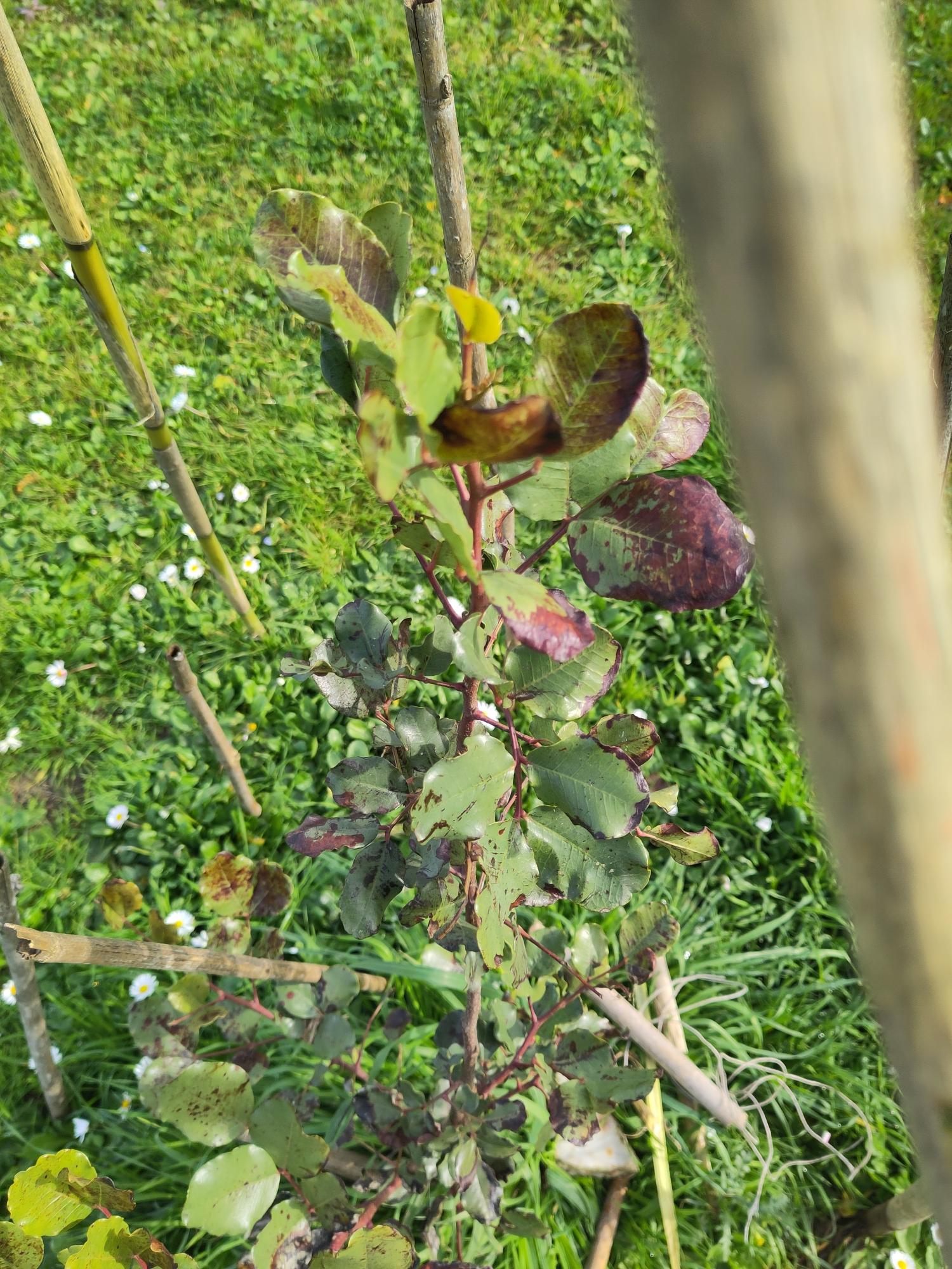 giovane carrubo con le foglie strinate dal freddo e dall'eccessivo umido.