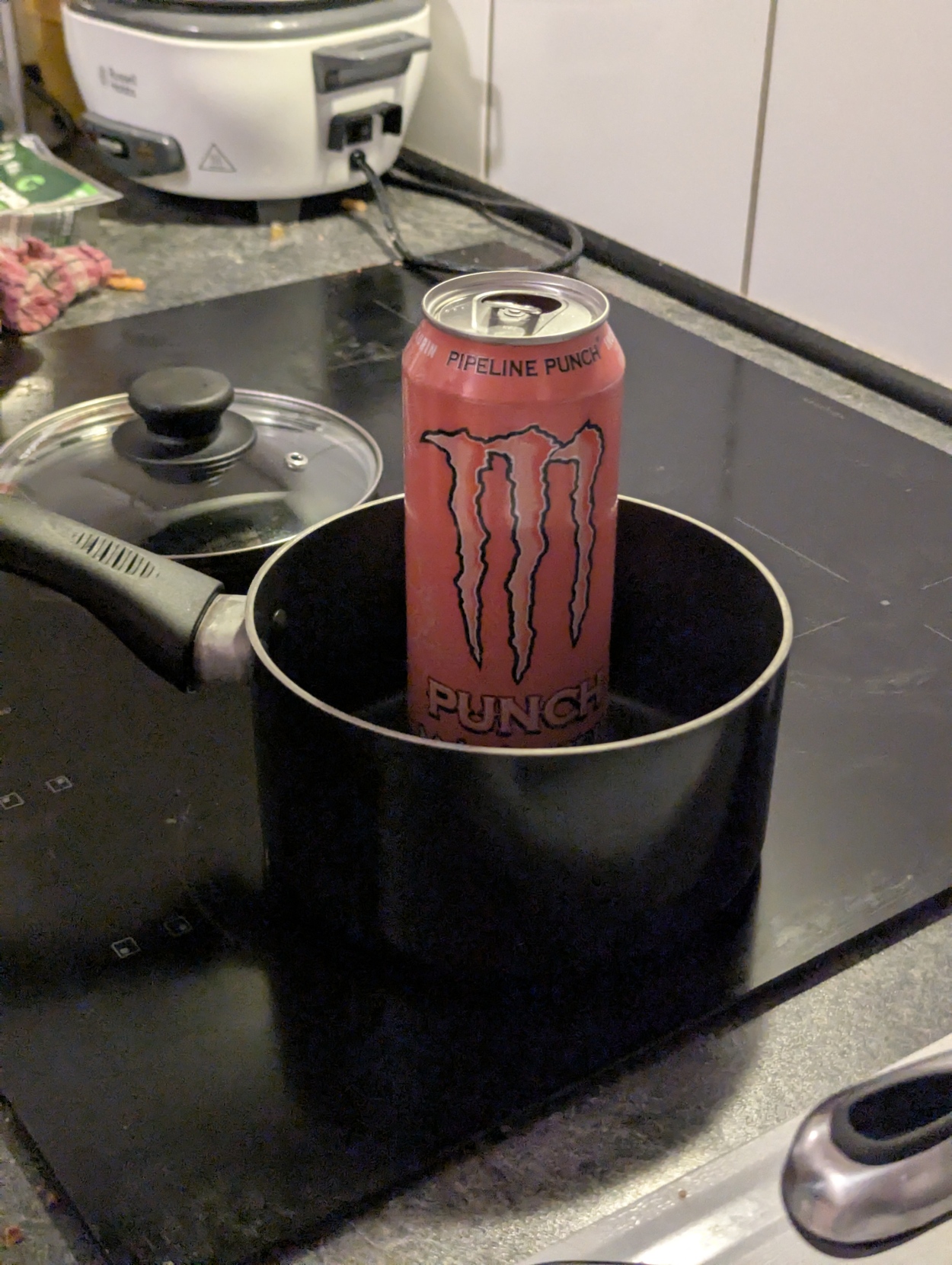 Eine Pipeline Punch-Dose welche in einem kleinen Topf drin steht.