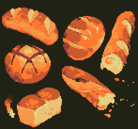 a set of pixel art breads