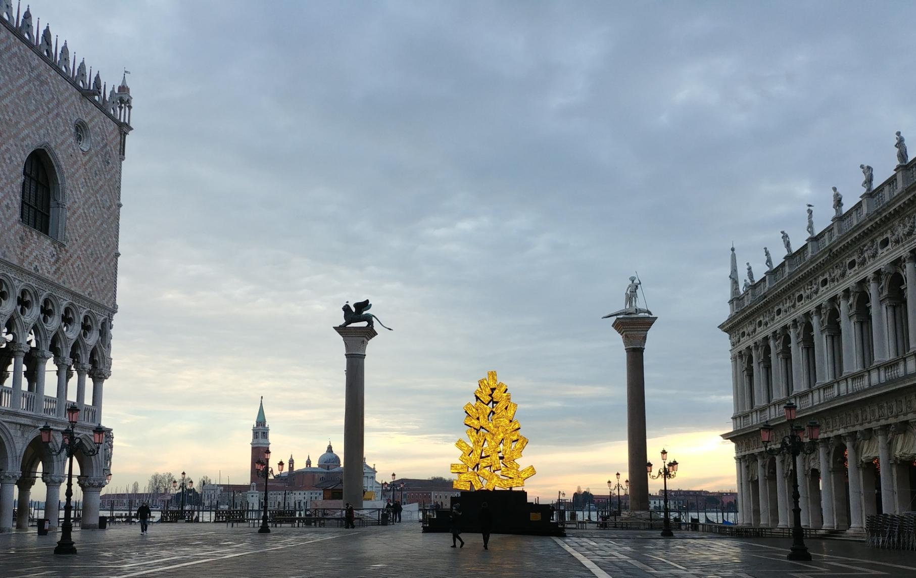 Installazione di Fabrizio Plessi, posta tra le due colonne vicino al bacino di san Marco. Era una serie di monitor disposti a formare un abete, monitor che quando erano accesi riproducevano fiamme. L'effetto era magnetico e bellissimo.