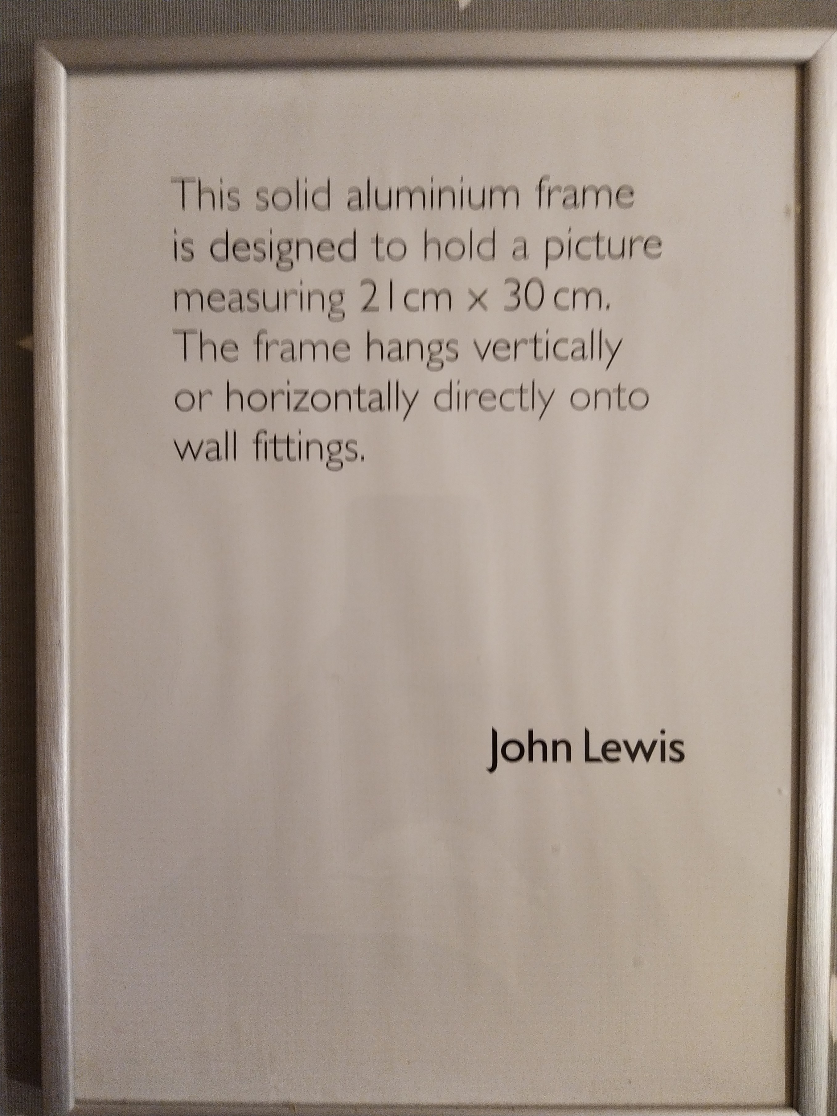 Is factory fresh John Lewis picture frame with product description inside that looks a bit like an inspirational quote.
