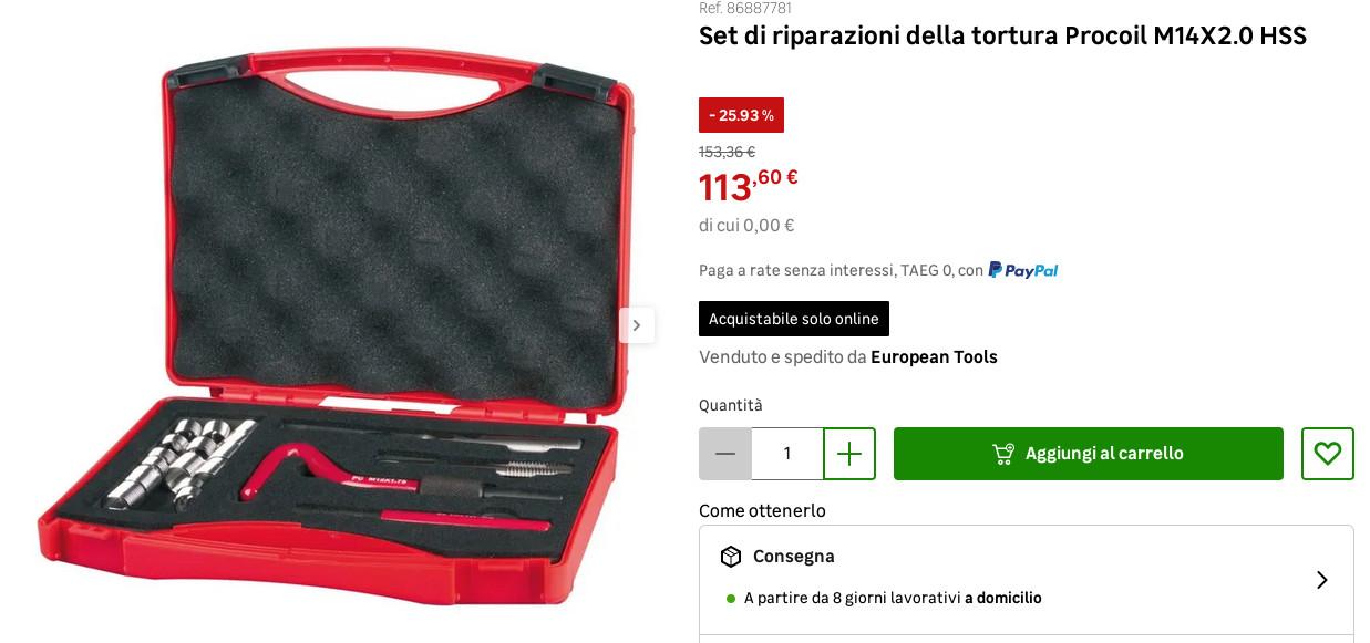 Set di riparazioni della tortura Procoil M14X2.0 HSS, in vendita a 113.60 € sul sito di Leroy Merlin.