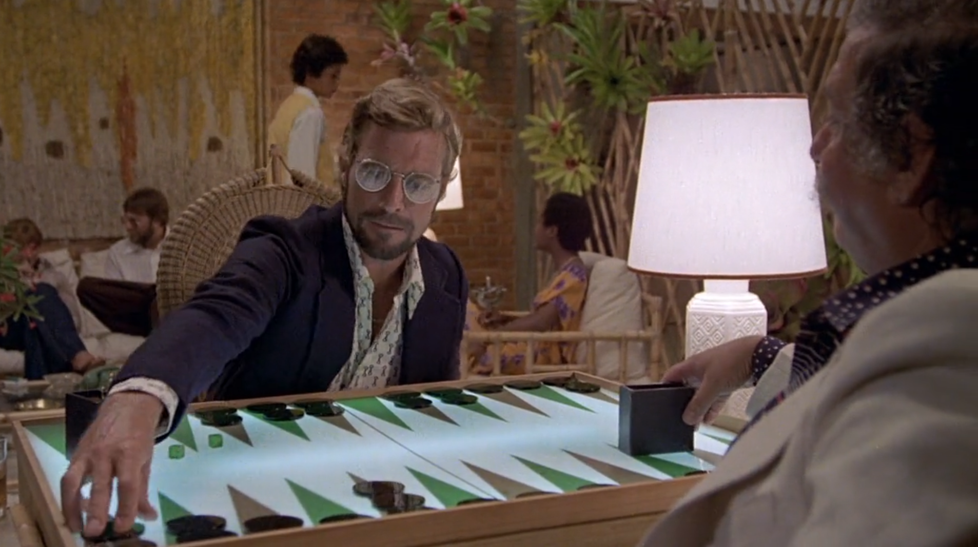 2 men play an elaborate game of backgammon.