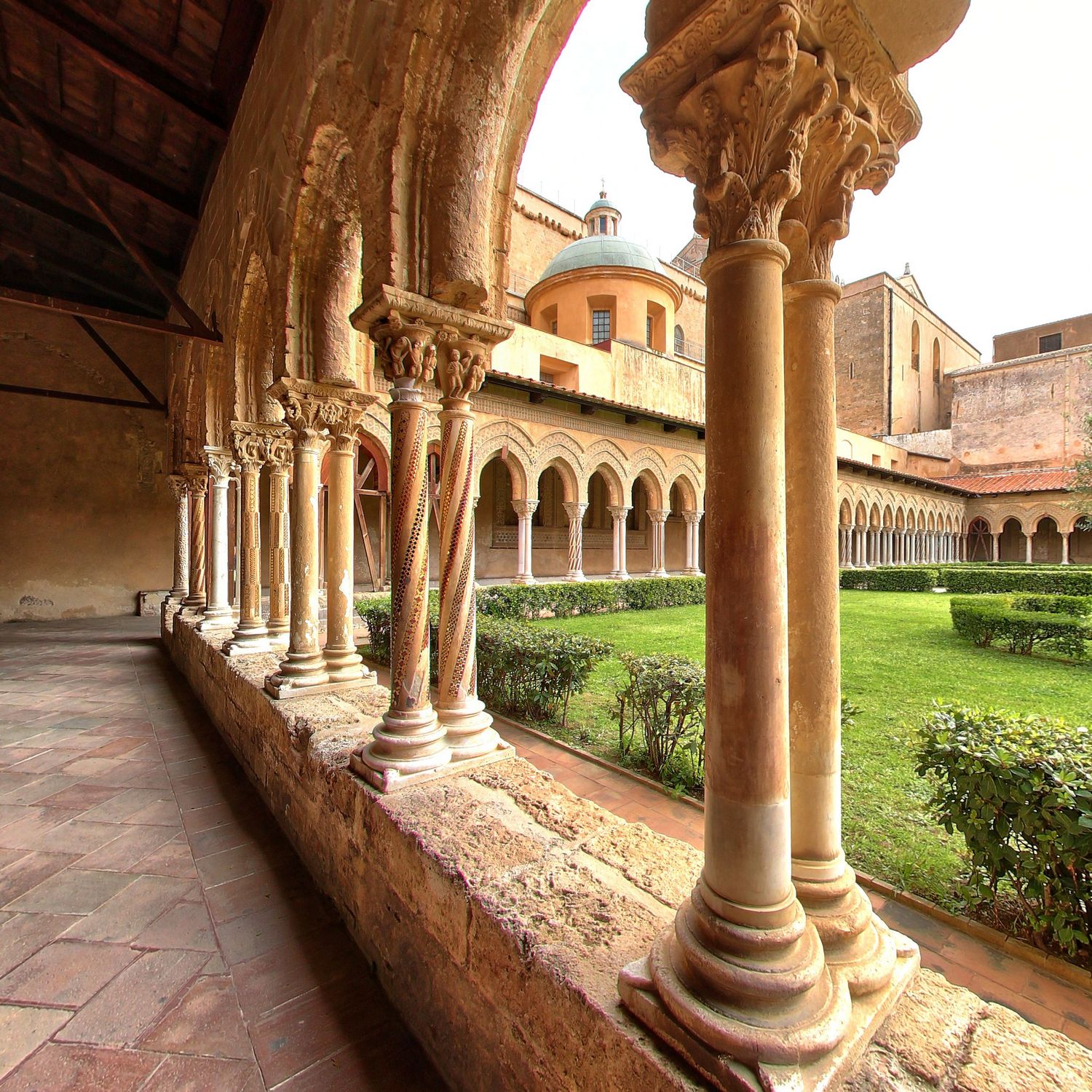 Il colonnato del Chiostro dei Benedettini a Monreale (PA)