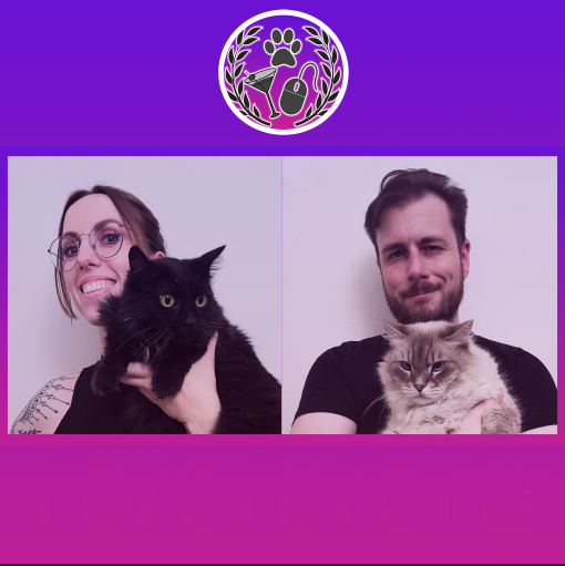 Il crest di K&S con sotto K e S che reggono in mano Luna e Sirio, la gattina nera e il gatto bianco