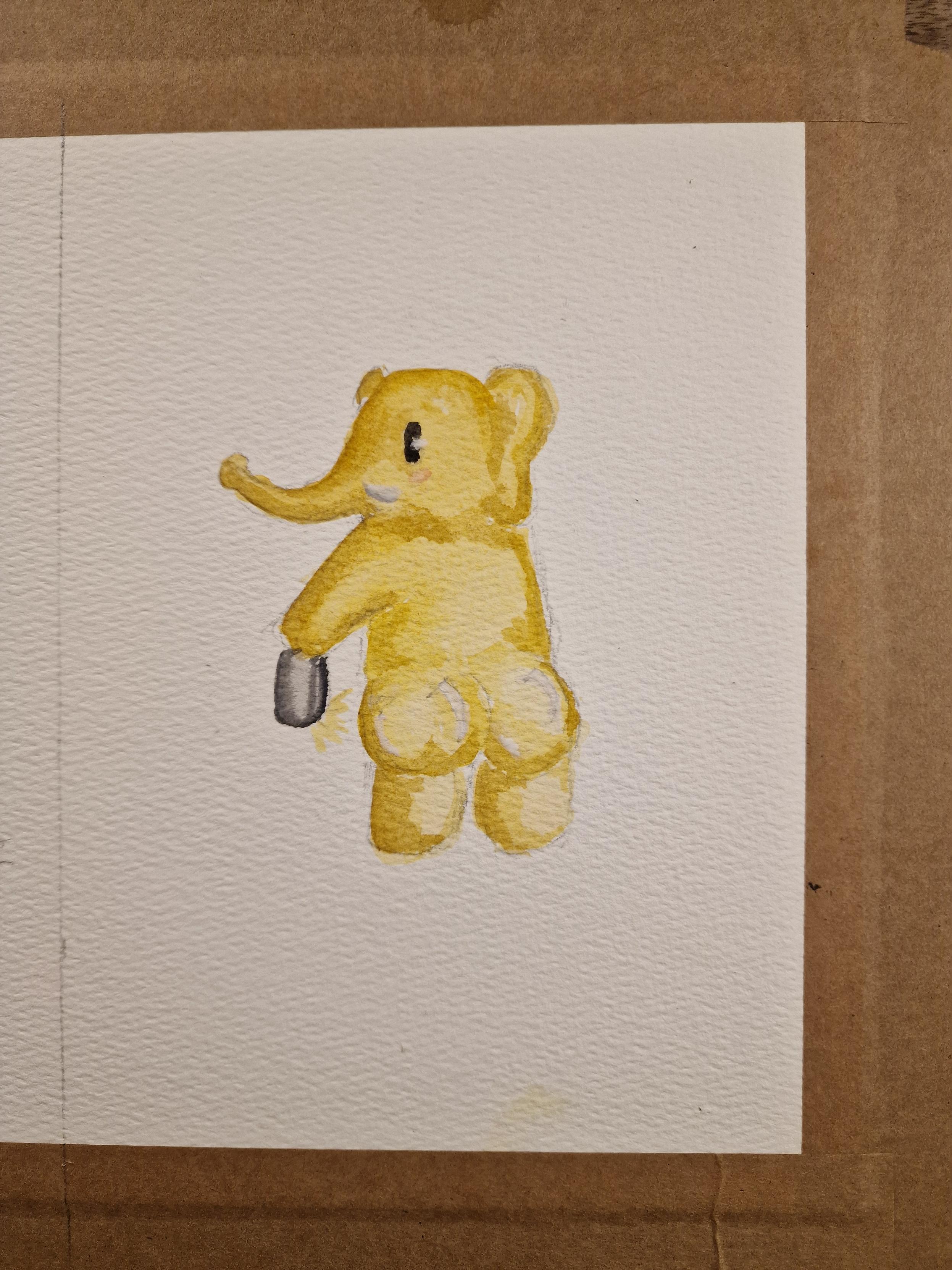 Watercolour painting of the mastodon elephant taking a selfie of his bum