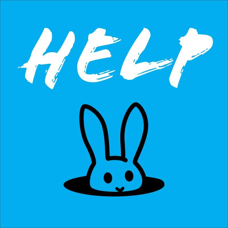 Scritta HELP con icona di un coniglietto che esce dalla tana