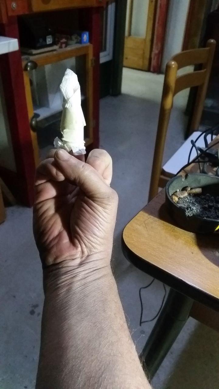 Dito medio proteso verso il cielo. Avvolto in scottex.