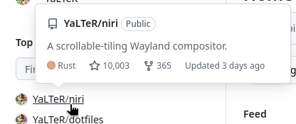 Hovering YaLTeR/niri on GitHub showing 10,003 stars
