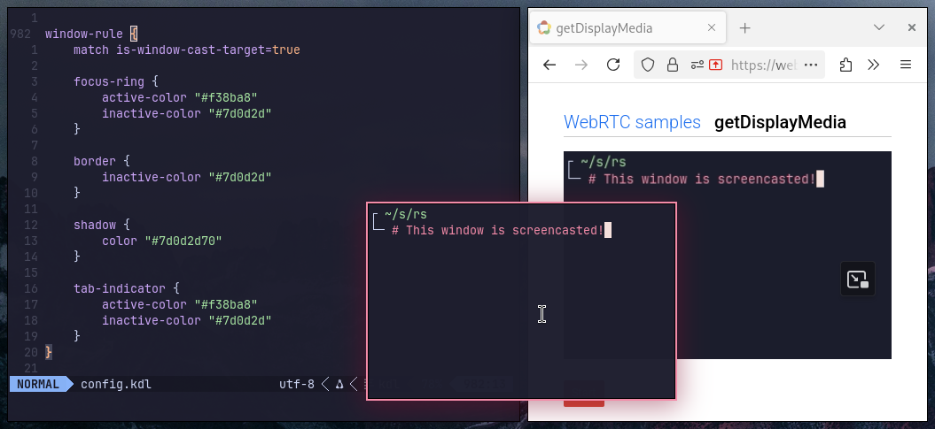 Firefox screencast sample casting a window, and the window itself is highlighted with a red border and shadow.