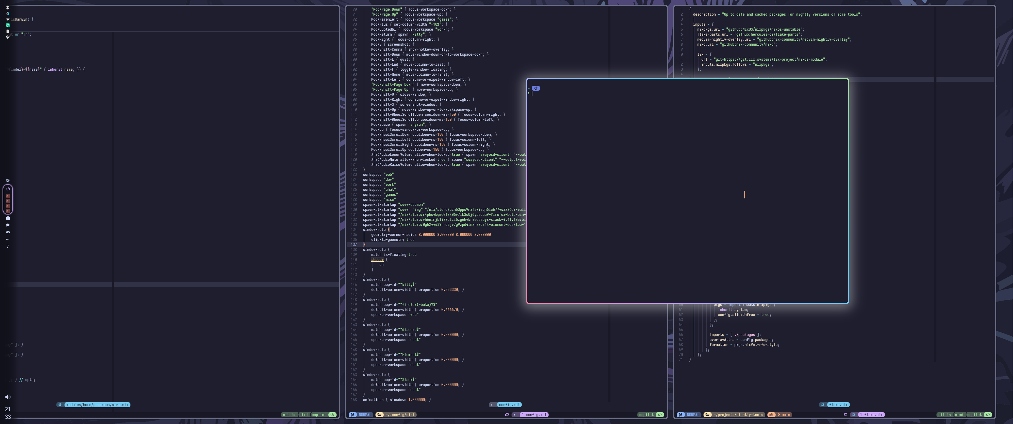 Dark style desktop screenshot with a floating terminal with a multicolored gradient border and white shadow around, from calops