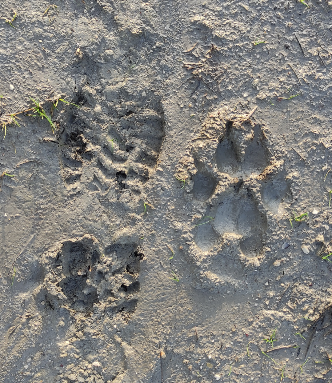 due orme sul mattaione a confronto: la mia e quella di un lupo