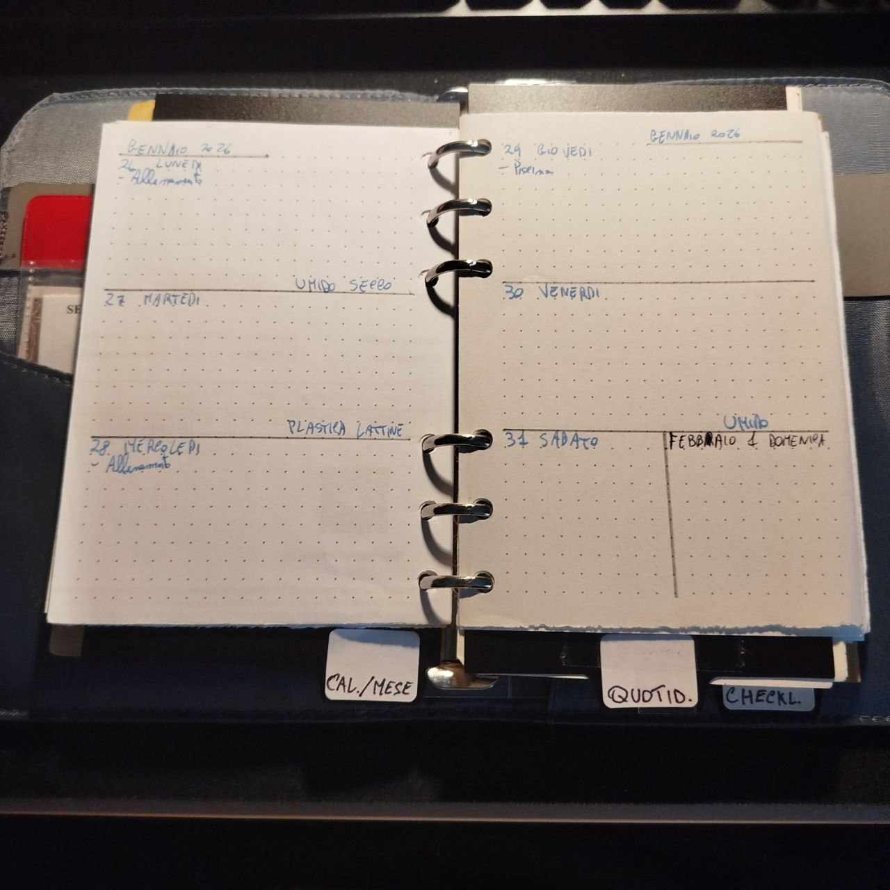 Un'agenda formato A6 con 6 anelli di tipo militare, molto compatta
