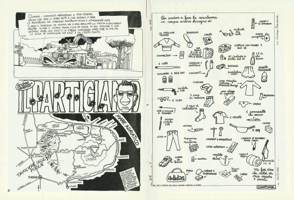 Inizio de il Partigiano di Andrea Pazienza: Quando i Comunisti arrivarono a San Severo, decisi che non li avrei retti e che andavo a fare la resistenza sul Gargano, montagna vicina e intimamente nota...