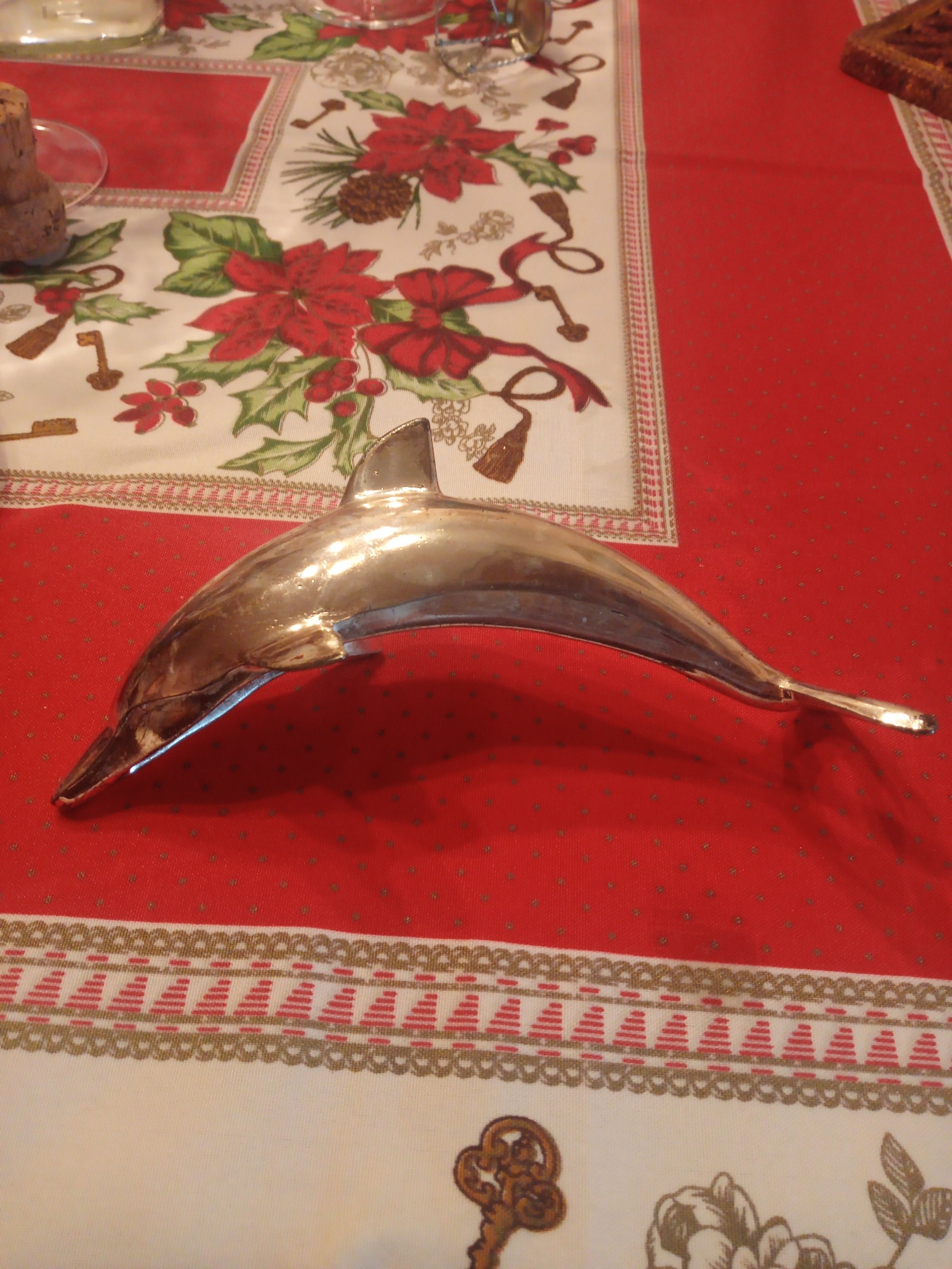 cavatappi d'argento a forma di delfino su tavola natalizia