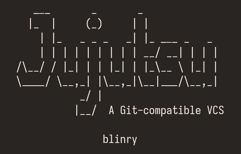 ASCII art that says "Jujutsu: A Git-compatible VCS, by blinry"