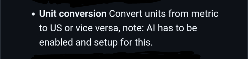screenshot of a github readme page for a project. "Unit conversion:Β Convert units from metric to US or vice versa, note: AI has to be enabled and setup for this."
