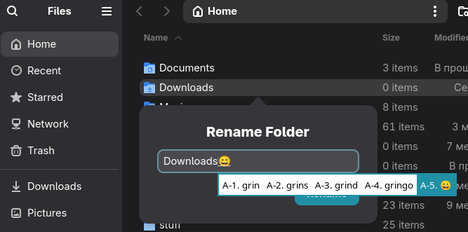 Nautilus rename folder popup with a fcitx5 IME pre-edit and menu