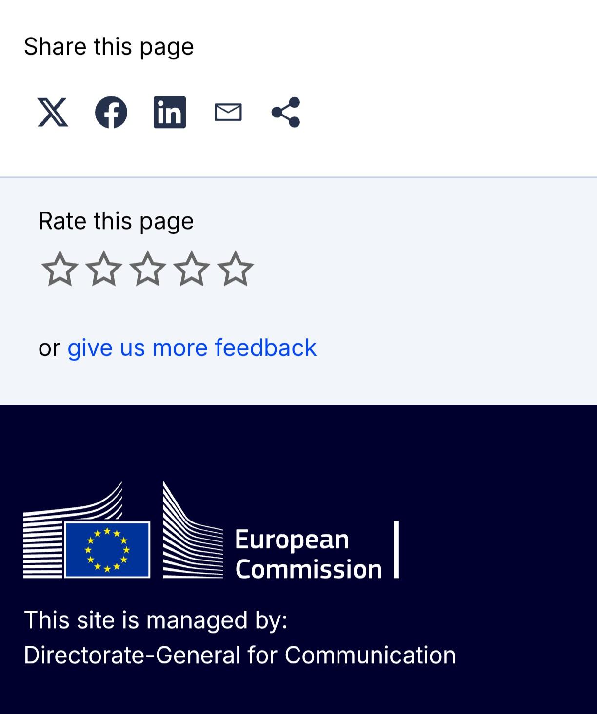 The "give us more feedback" link that opens a comment form on the EU Commission web site.