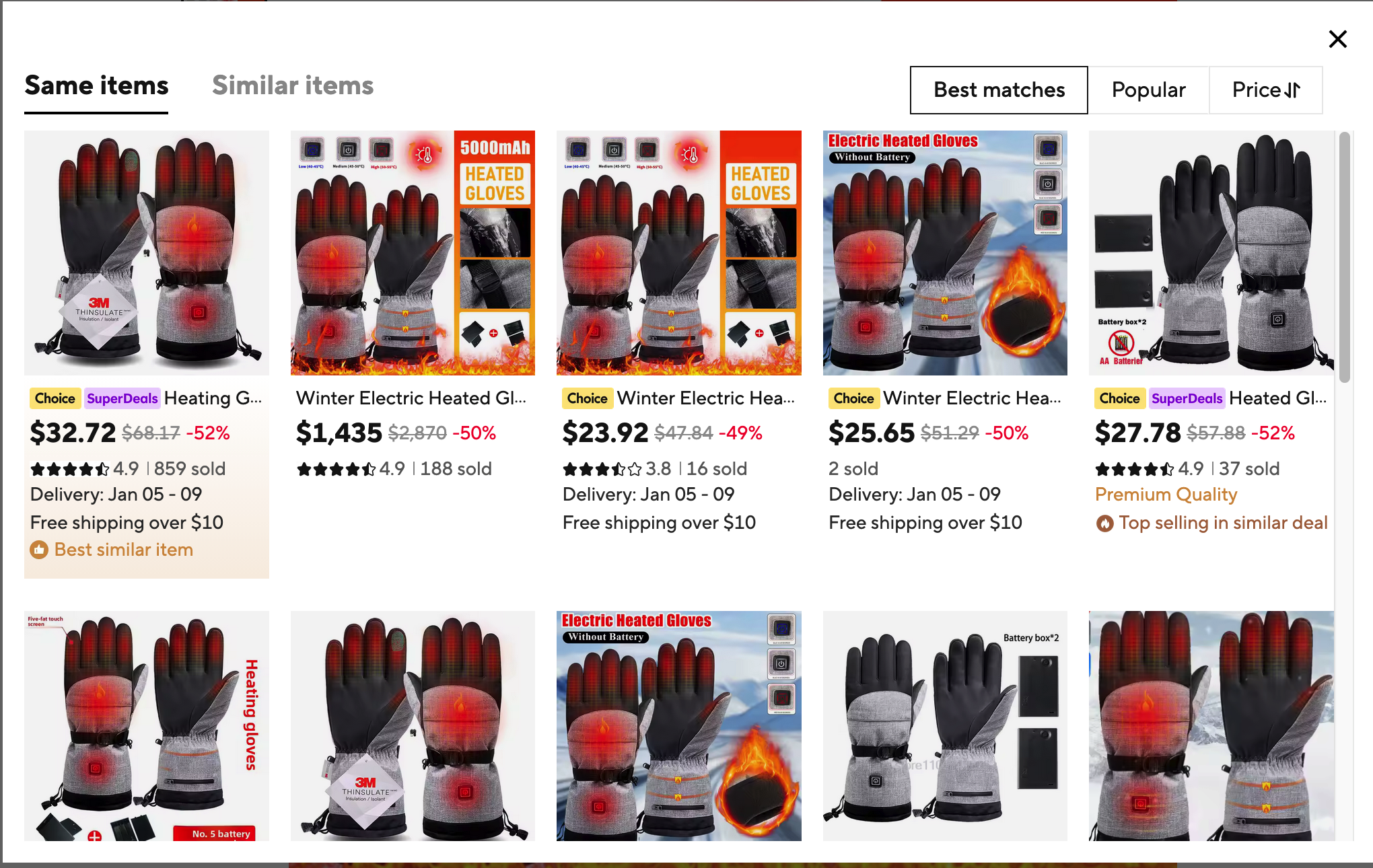 The result is a search that returns all similar items! Now you can find the lowest price or find products with the exact features you want.