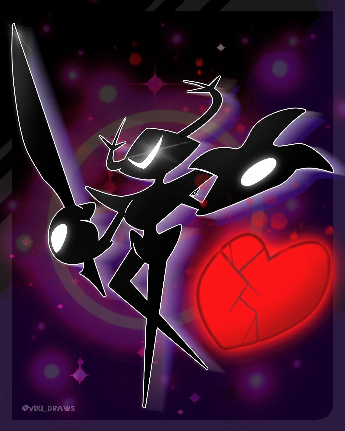Fanart del Roaring Knight di Deltarune. Il disegno rappresenta il cavaliere che fluttua armato della sua spada mentre in primo piano un cuore frantumato levita impotente difronte al cavaliere