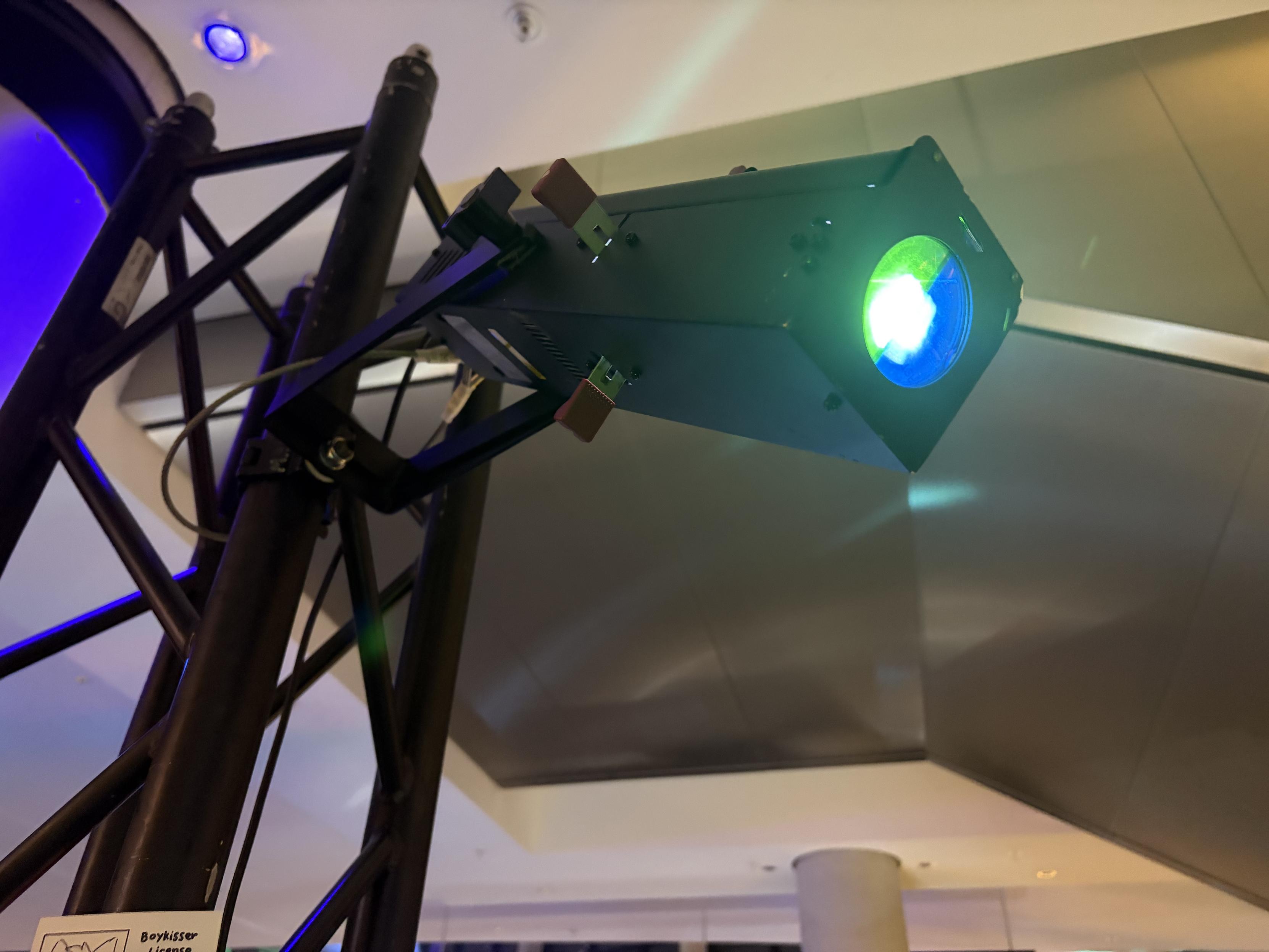the "boy kisser" emblem in bright blue and green LED light projector