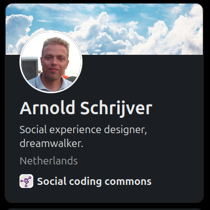 Profile card with 2 dream jobs I pursue under the banner of Social coding commons: Social experience designer and dreamwalker respectively. My hobby is dreamer.