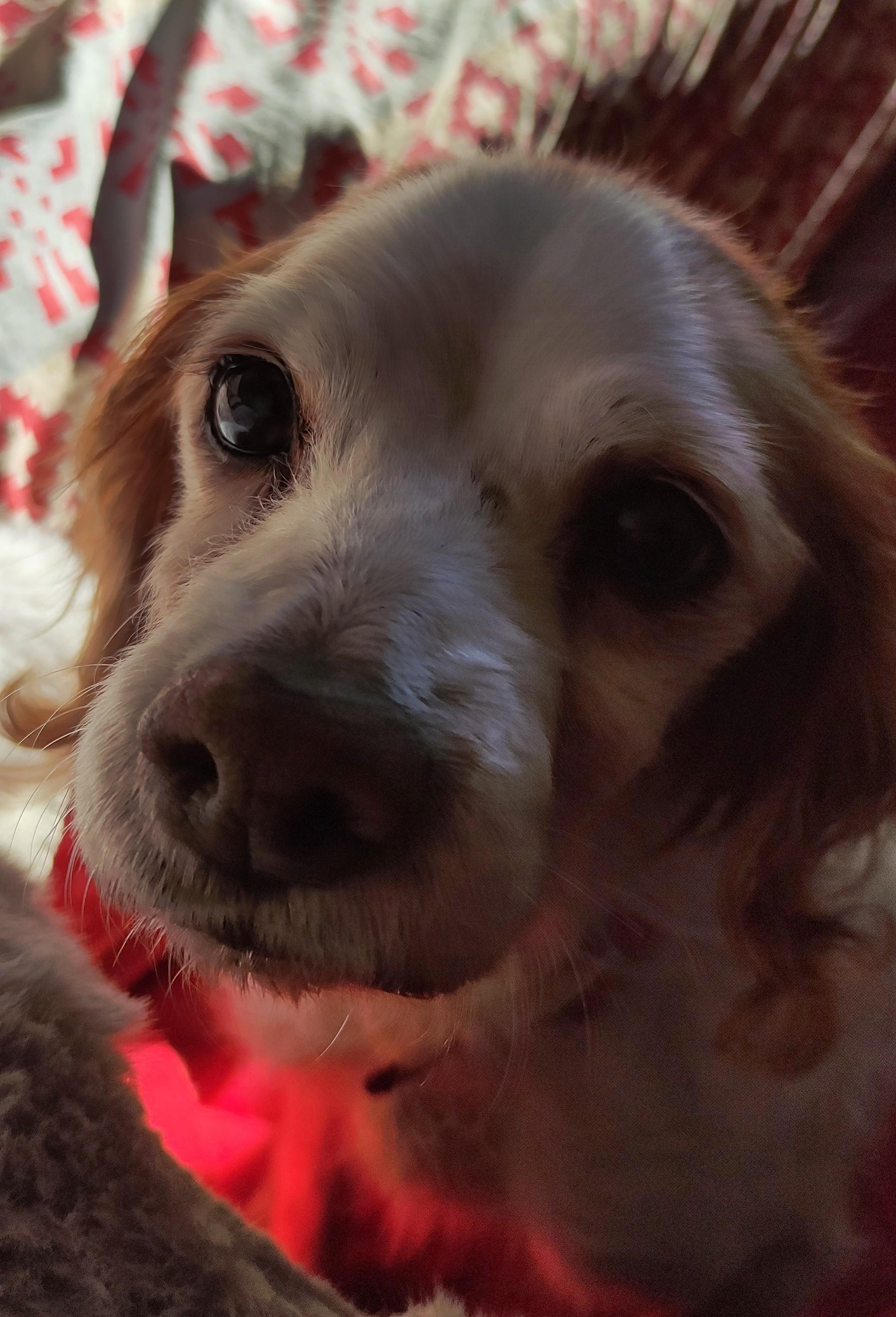 Stessa cana, ma si vede il muso, guarda in camera con occhi opachi e bocca sdentata