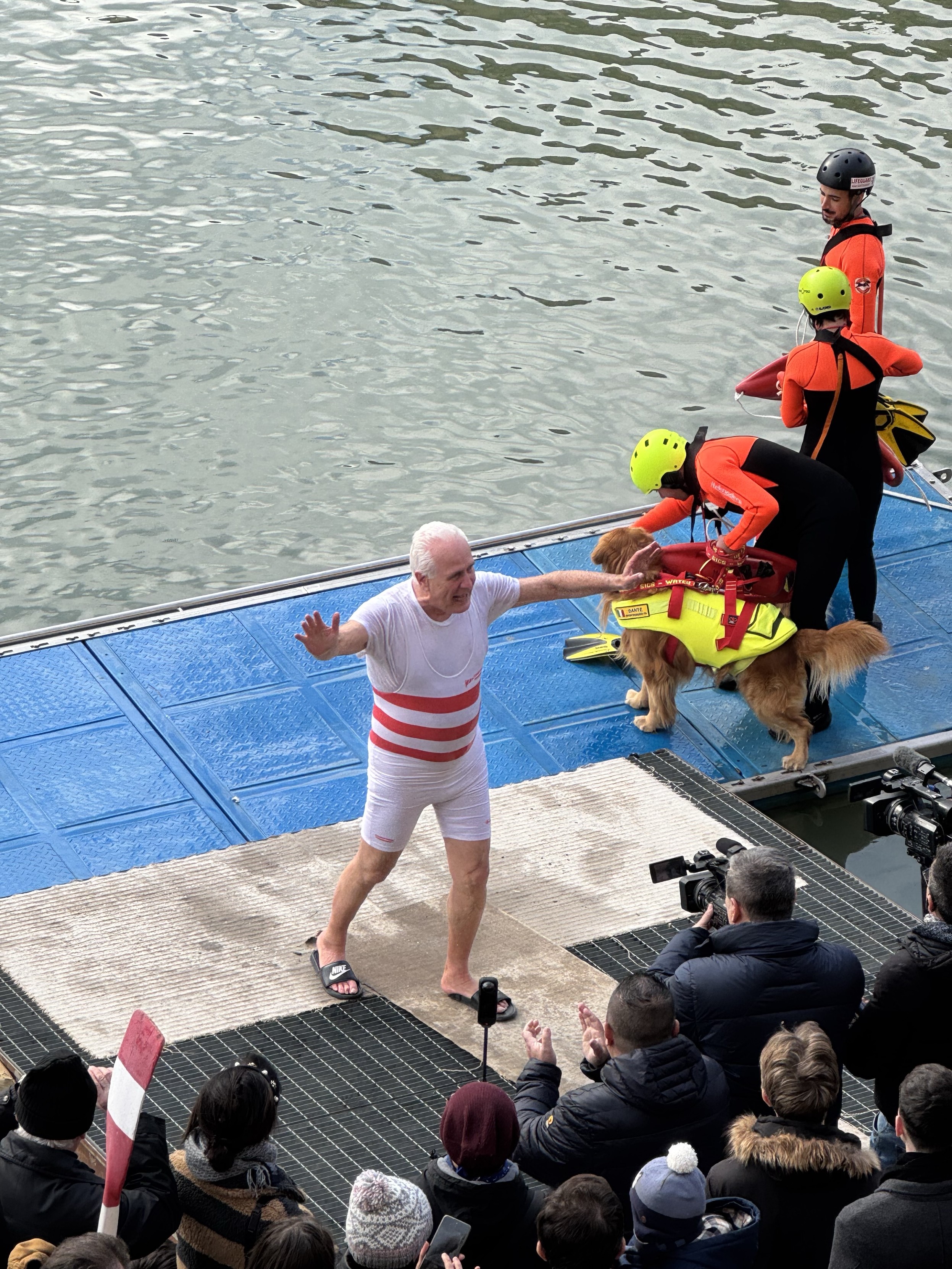 Eugenio Giani dopo il tuffo in Arno di inizio anno.
