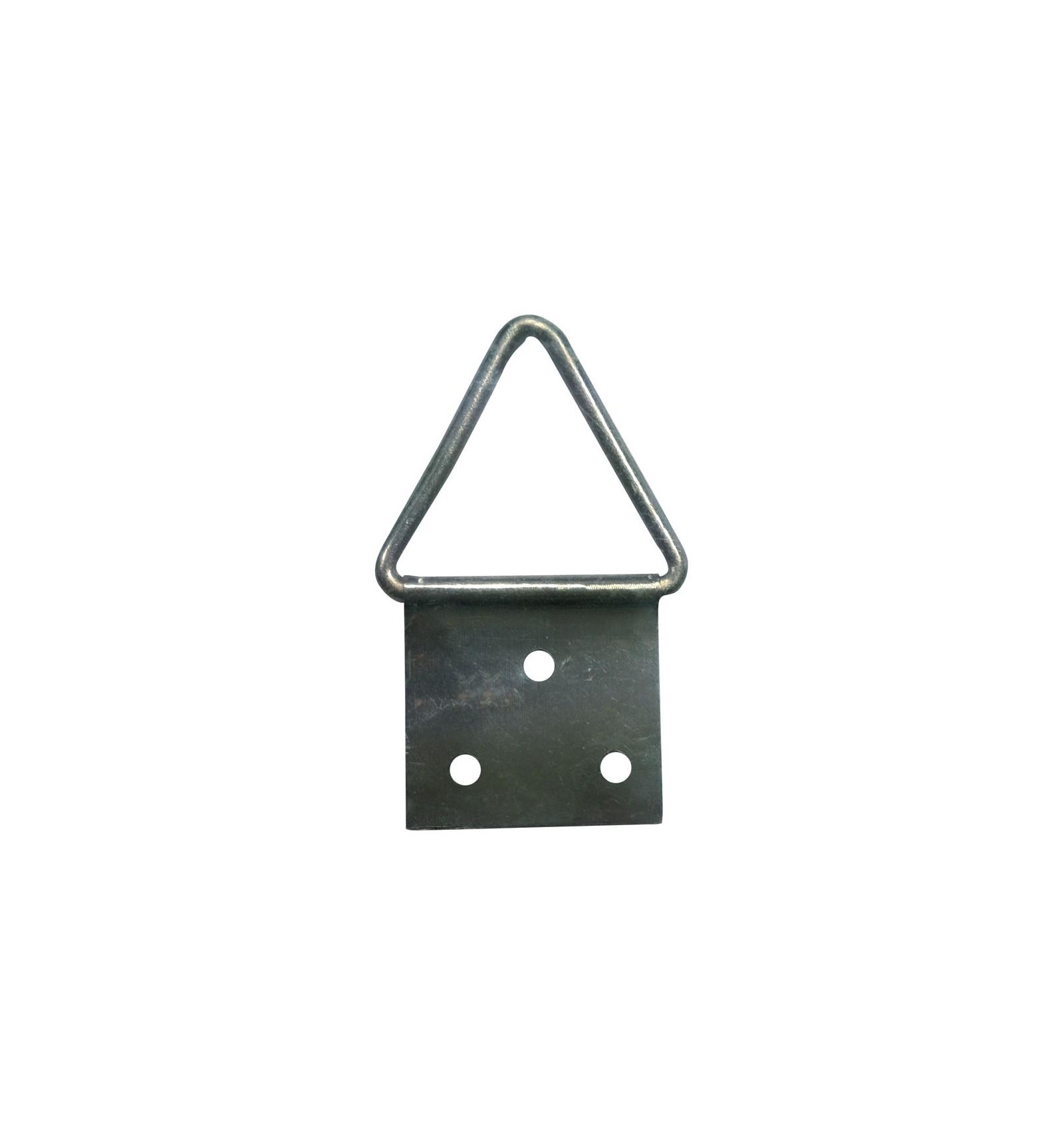 Attaccaglia snodata nichelata, con tre fori e occhiello a appendere triangolare. Per chi usa WA: va inchiodata SUL RETRO della cornice.