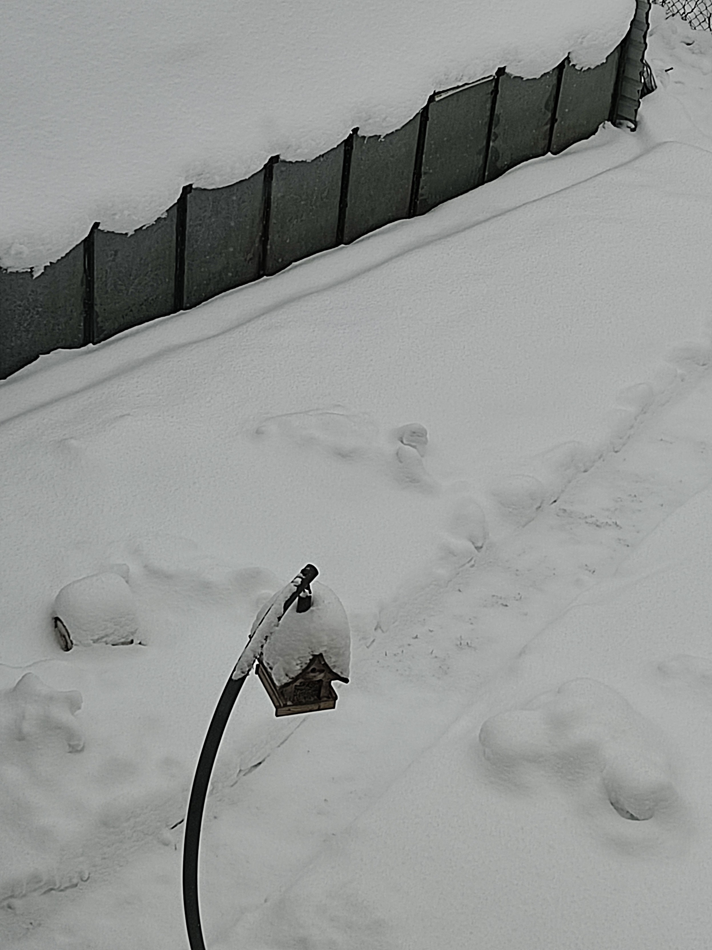 Casetta per mangiatoia di uccellini sepolta dalla neve