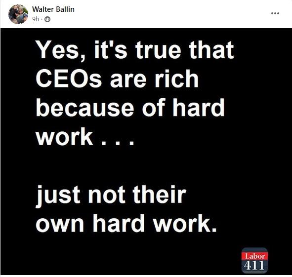 Yes, it's true that CEOs are rich because of hard work.... just not their own hard work.