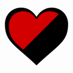 Un cuore stilizzato con la parte in alto a sinistra rossa e la parte in basso a destra nera.