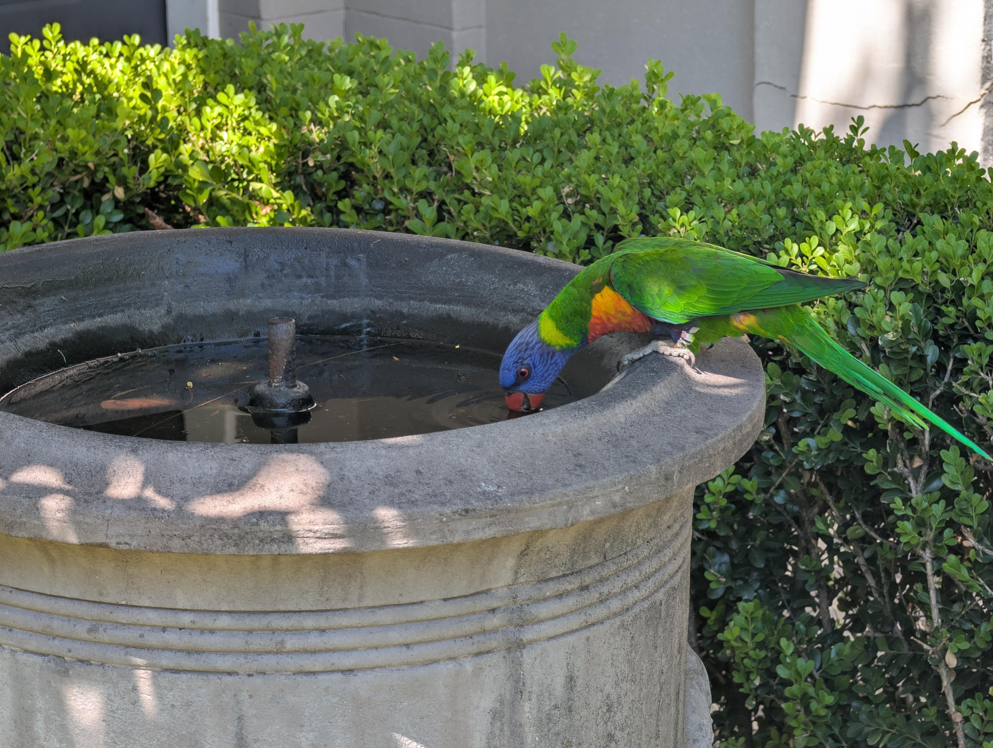 The same rainbow Lorikeet having a drink of water