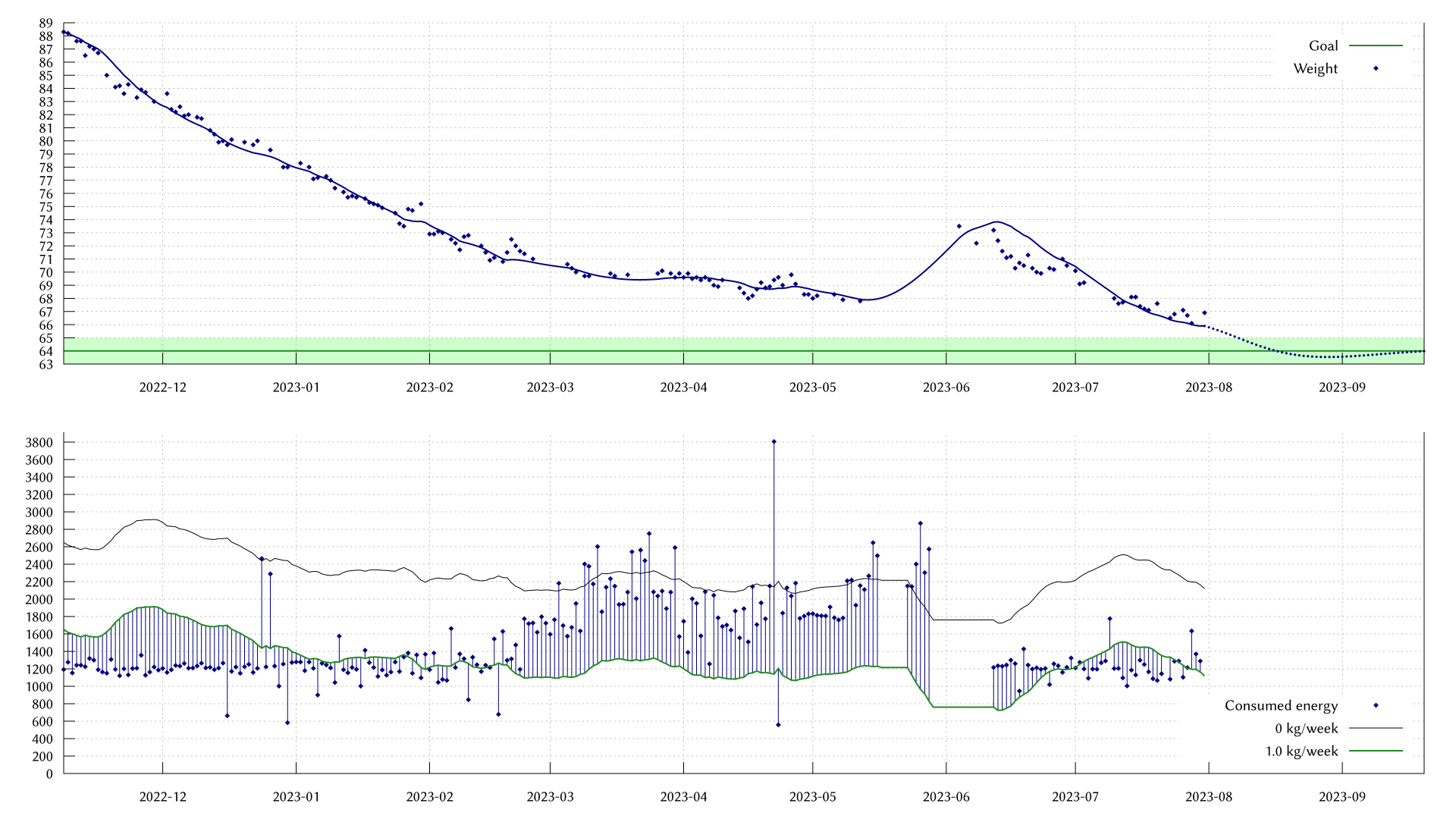 My weight dropped at a medium pace to approximately 66 kg.