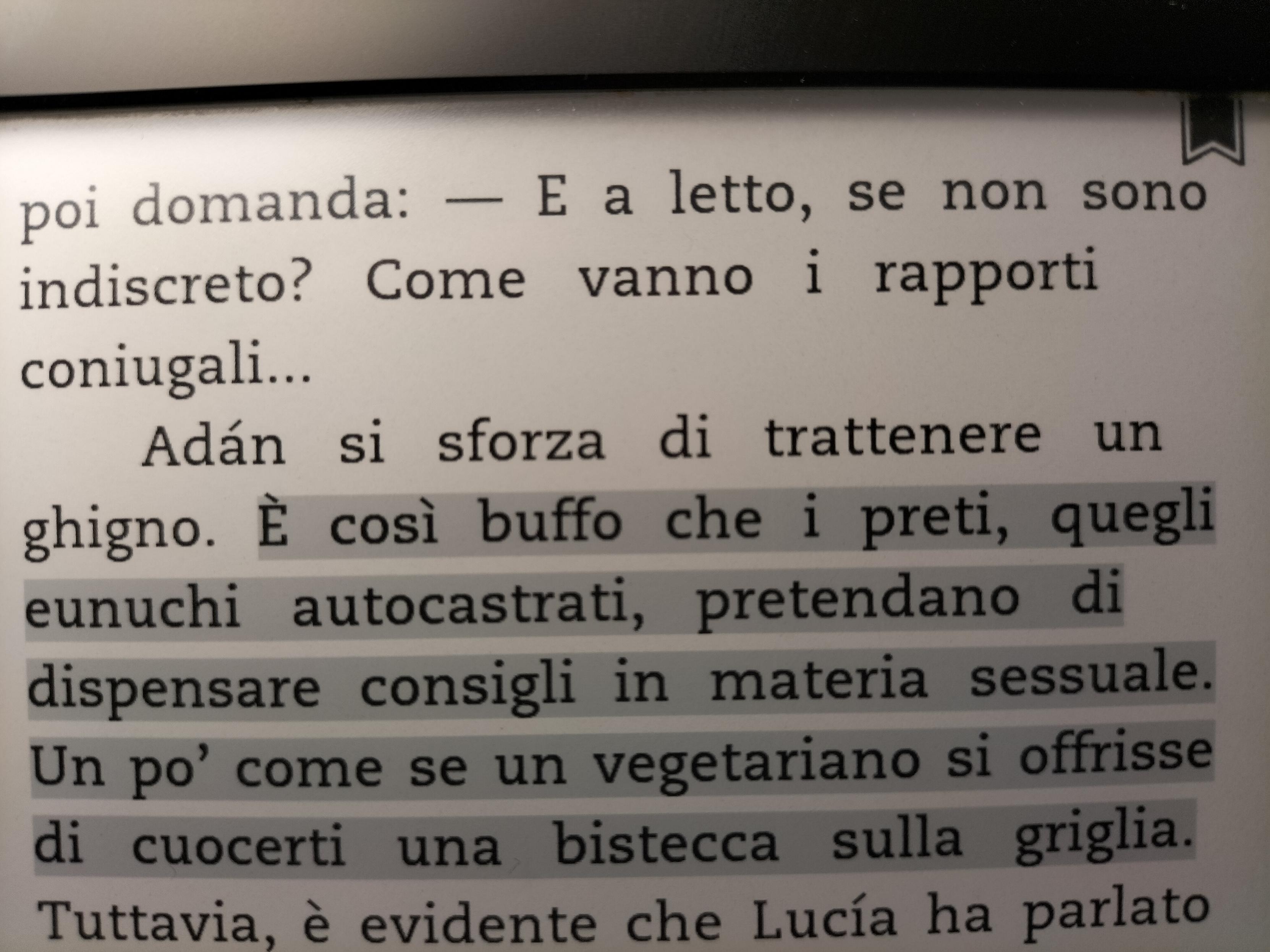 È così buffo che i preti quegli eunuchi autocastrati, pretendono le dispensare consigli in materia sessuale. Un po' come se un vegetariano si offrisse di cuocersi una bistecca sulla griglia.