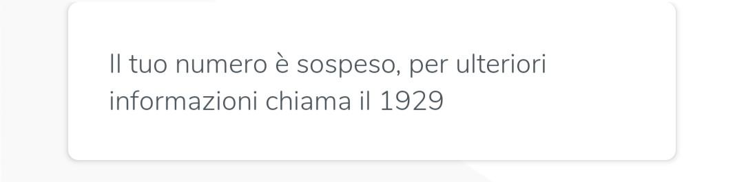 messaggio sull'app di VERY Mobile con scritto "Il tuo numero รจ sospeso, per ulteriori informazioni chiama il 1929"