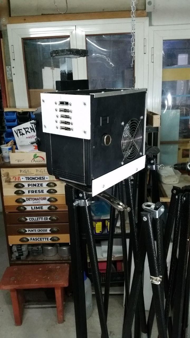 Alimentatore ATX con 10 uscite USB montato su una piattaforma ganasciata a una zampa del gazebone.