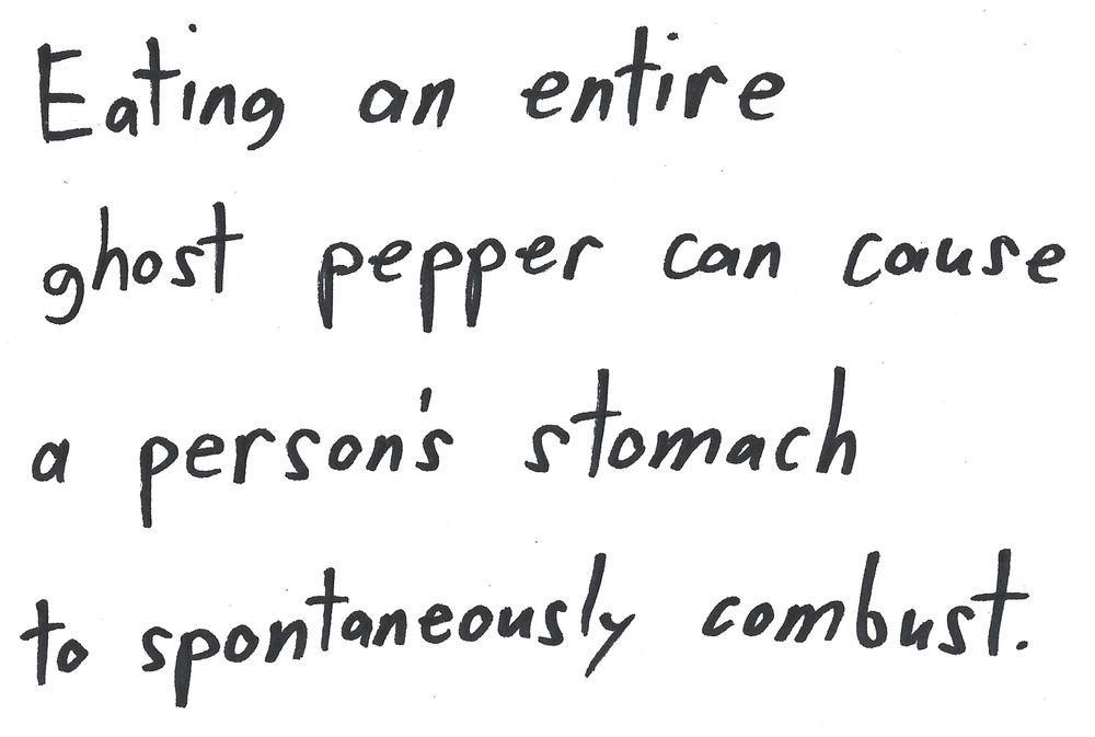 Eating an entire ghost pepper can cause a person's stomach to spontaneously combust.