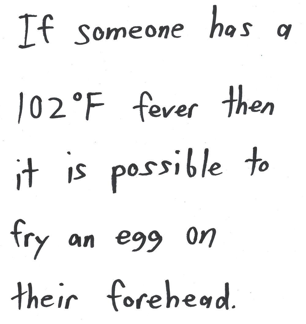 If someone has a 102 °F fever then it is possible to fry an egg on their forehead.