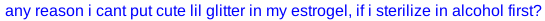 screenshot of blue text on white background: any reason i cant put cute lil glitter in my estrogel, if i sterilize in alcohol first?