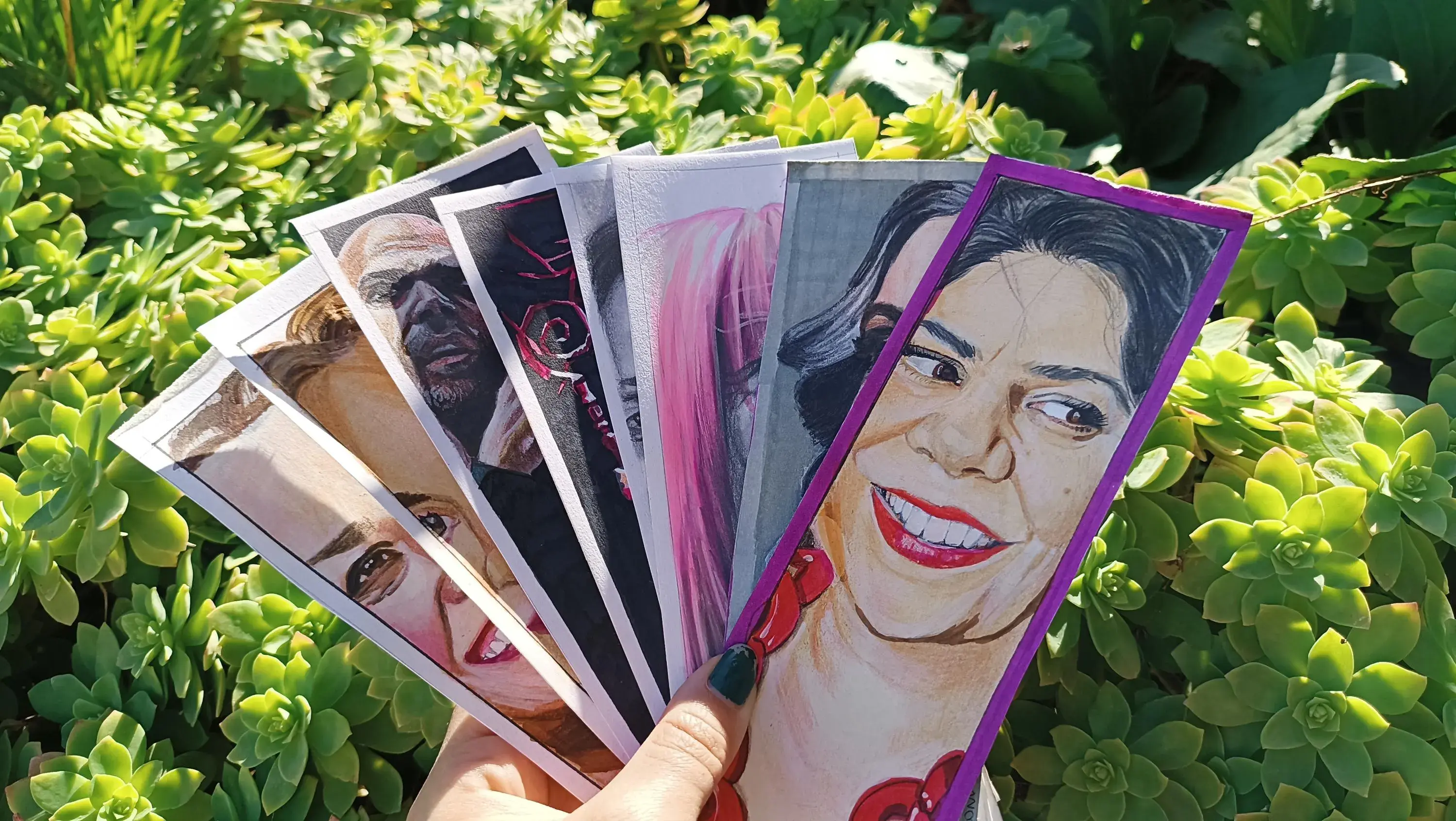 segnalibri realizzati a mano con acquerello di autori e autrici di libri