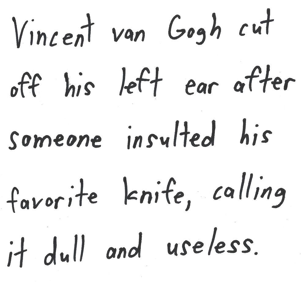 Vincent van Gogh cut off his left ear after someone insulted his favorite knife, calling it dull and useless.