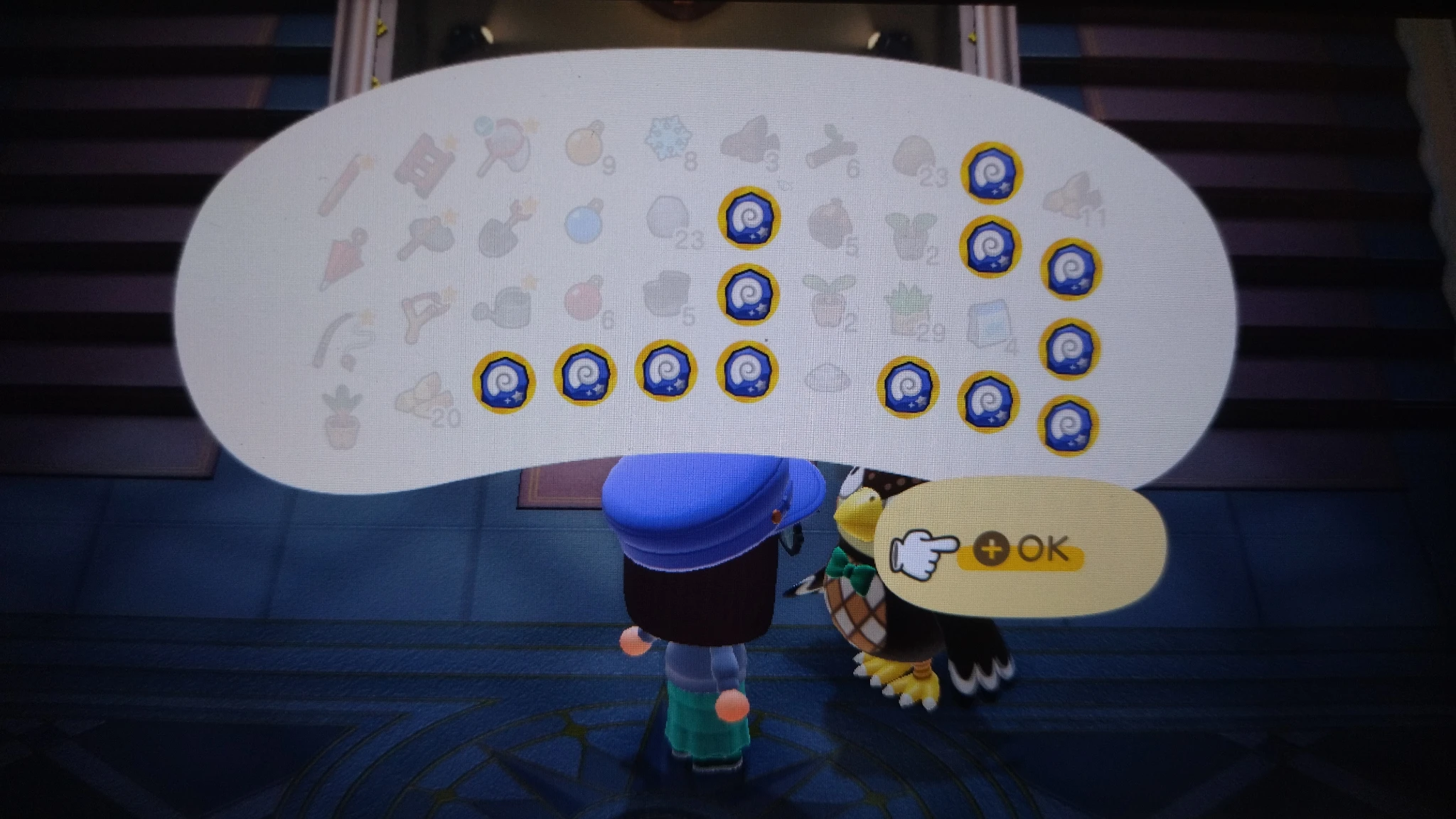 Schermata parlando con Blatero, 13 fossili sono selezionati nell'inventario per l'analisi